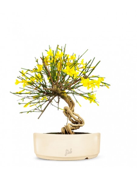 Il Gelsomino d'inverno (Jasminum Nudiflorum), è un bonsai da esterno originario della Cina e caratterizzato da rami sottili di un bel verde scuro, da foglie lucide della medesima tonalità e da piccoli fiori gialli che fanno la loro comparsa quando l'inverno comincia a volgere al termine. Il bonsai di gelsomino richiede davvero poche cure, si coltiva con facilità ed è quindi adatto anche a chi non ha grande esperienza. Si tratta, infatti, di una pianta molto rustica che apprezza qualsiasi posizione anche se, in pieno sole, offre una fioritura più abbondante. In caso di inverni particolarmente rigidi è consigliabile fornire al bonsai di Jasminum Nudiflorum una protezione di tessuto non tessuto così da evitare che il gelo danneggi i boccioli.