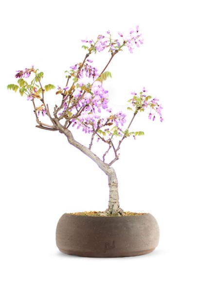 Nonostante abbia un'anima da rampicante, il Glicine bonsai, produce esemplari splendidi. Il tronco giovane tende a contorcersi su sé stesso, proponendo quell'effetto "secolare" tipico di specie longeve. Le foglie sono caduche e composte da piccole foglioline parallele.