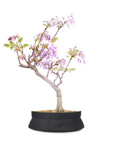 Nonostante abbia un'anima da rampicante, il Glicine bonsai, produce esemplari splendidi. Il tronco giovane tende a contorcersi su sé stesso, proponendo quell'effetto "secolare" tipico di specie longeve. Le foglie sono caduche e composte da piccole foglioline parallele.