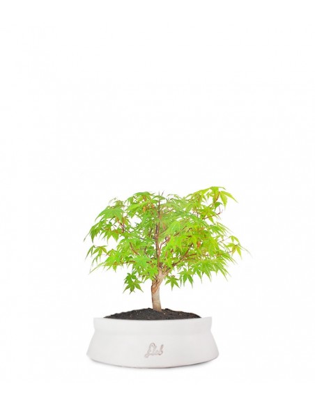 La particolarità di questo bonsai di Acero è di possedere, nel pieno del periodo vegetativo, delle meravigliose foglie color verde chiaro/giallastro, con una fine bordatura rossa sui lati. Esse principiano con un rosso acceso e lo riprendono in autunno, prima di cadere.