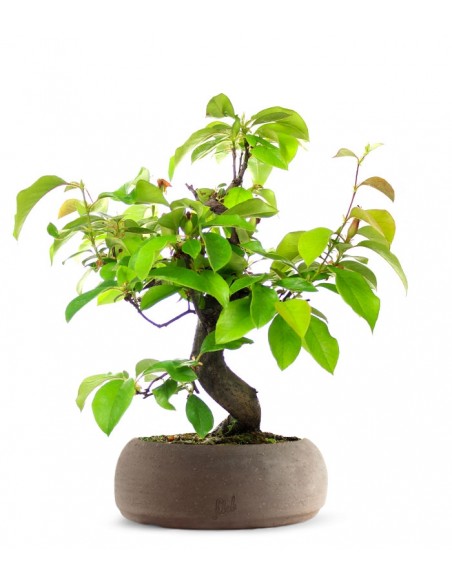 Il Melo cotogno è una delle piante maggiormente impiegate per la coltivazione a bonsai per la sua abbondante fioritura, perché produce piccole mele commestibili, per la sua crescita veloce e perché è una pianta rustica che difficilmente viene attaccata da malattie e parassiti. Della stessa famiglia delle nostre mele da pasto, fiorisce precocemente a primavera: le gemme color rosa antico si schiudono con l'arrivo della primavera generando dei fiori bianchi molto graziosi e profumati, del diametro di circa 3/5 cm. I frutti che si originano dai fiori impollinati sfoggiano tutte le tonalità dei colori dell'autunno e rimangono per molto tempo attaccate ai rami. Nonostante sia una pianta rustica e longeva, attieniti a queste indicazioni se vuoi che il tuo Malus bonsai cresca sano e rigoglioso: scegli una posizione molto luminosa ma proteggilo con una rete dai raggi del sole troppo intensi d'estate; innaffialo con regolarità dalla primavera all'autunno, anche 2 volte al giorno; scegli un substrato di coltivazione che garantisca un buon drenaggio e fornisci durante tutto il periodo vegetativo un buon fertilizzante a cessione lenta ricco di fosforo. Vedrai che sarà semplicissimo coltivare il tuo albero di mele in miniatura e in breve tempo potrai godere della sua spettacolare fioritura.