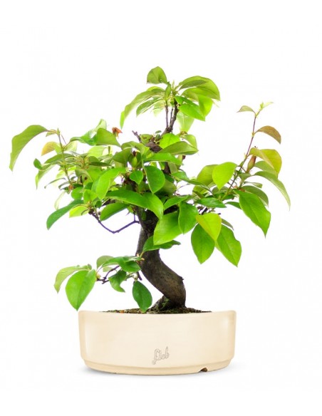 Il Melo cotogno è una delle piante maggiormente impiegate per la coltivazione a bonsai per la sua abbondante fioritura, perché produce piccole mele commestibili, per la sua crescita veloce e perché è una pianta rustica che difficilmente viene attaccata da malattie e parassiti. Della stessa famiglia delle nostre mele da pasto, fiorisce precocemente a primavera: le gemme color rosa antico si schiudono con l'arrivo della primavera generando dei fiori bianchi molto graziosi e profumati, del diametro di circa 3/5 cm. I frutti che si originano dai fiori impollinati sfoggiano tutte le tonalità dei colori dell'autunno e rimangono per molto tempo attaccate ai rami. Nonostante sia una pianta rustica e longeva, attieniti a queste indicazioni se vuoi che il tuo Malus bonsai cresca sano e rigoglioso: scegli una posizione molto luminosa ma proteggilo con una rete dai raggi del sole troppo intensi d'estate; innaffialo con regolarità dalla primavera all'autunno, anche 2 volte al giorno; scegli un substrato di coltivazione che garantisca un buon drenaggio e fornisci durante tutto il periodo vegetativo un buon fertilizzante a cessione lenta ricco di fosforo. Vedrai che sarà semplicissimo coltivare il tuo albero di mele in miniatura e in breve tempo potrai godere della sua spettacolare fioritura.
