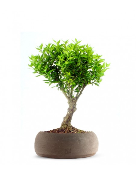 La crescita lenta del bonsai Citrus myrtifolia l'ha trasformato in uno degli alberi prediletti da neofiti ed appassionati: il suo sviluppo informale, lo rende idoneo ad assumere diversi stili, quale quello a palchi degradanti o a fusto inclinato. Il tronco è rossastro e spinoso, con foglie ovali e brillanti, dal portamento cespuglioso. Le zagare bianche dal profumo intenso, che spuntano all'estremità dei rami del bonsai, segnano l'inizio della fioritura. Per raccogliere i frutti del Chinotto dovrai aspettare settembre e la raccolta potrà continuare sino a novembre. Come altri agrumi, anche il Citrus Myrtifolia preferisce il clima temperato e gli ambienti esterni soleggiati, mentre d'inverno converrà tenerlo in ambiente protetto dalle temperature rigide. Le innaffiature devono essere abbondanti soprattutto quando il terriccio appare asciutto al tatto. Un bonsai di questo genere in casa porta con sé la primavera anche d'inverno, lasciando che tu goda dei suoi frutti per produrre bevande, confetture o zuccherini canditi.