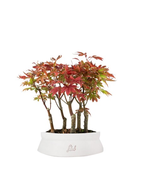 La disposizione di più bonsai nello stesso vaso è volta a creare, infatti, l'atmosfera di un piccolo boschetto in miniatura, e nel caso dell'Acero risulta ottima per creare un impatto visivo decisamente notevole. Questa versione con 5 bonsai assume un'accezione veramente interessante.