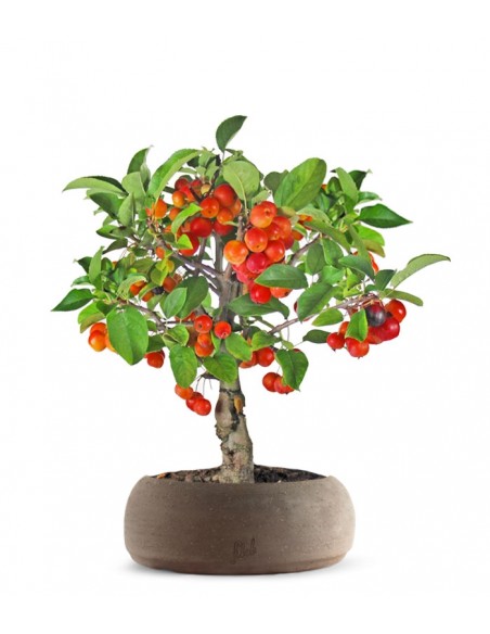 Il Malus o melo selvatico è tra le essenze più belle da coltivare come bonsai. Produce infatti una abbondante fioritura in primavera. Le gemme color rosa antico generano fiori bianchi molto graziosi e profumati, che si trasformano poi in piccole mele (commestibili) del diametro di circa 3/5 cm. Inoltre cresce velocemente ed è una pianta molto resistente, che difficilmente viene attaccata da malattie e parassiti.