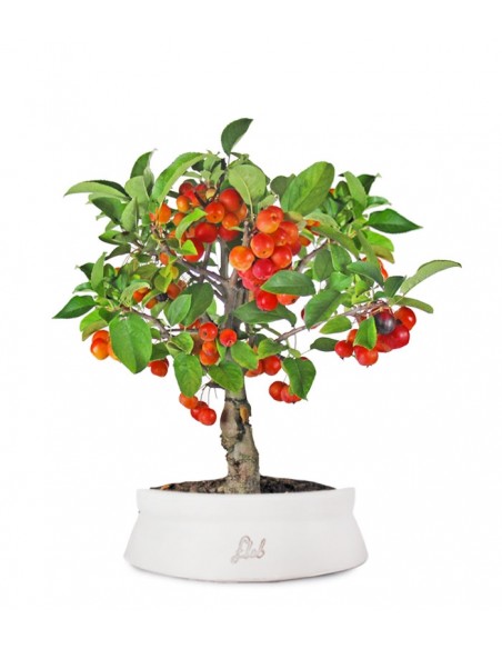Il Malus o melo selvatico è tra le essenze più belle da coltivare come bonsai. Produce infatti una abbondante fioritura in primavera. Le gemme color rosa antico generano fiori bianchi molto graziosi e profumati, che si trasformano poi in piccole mele (commestibili) del diametro di circa 3/5 cm. Inoltre cresce velocemente ed è una pianta molto resistente, che difficilmente viene attaccata da malattie e parassiti.