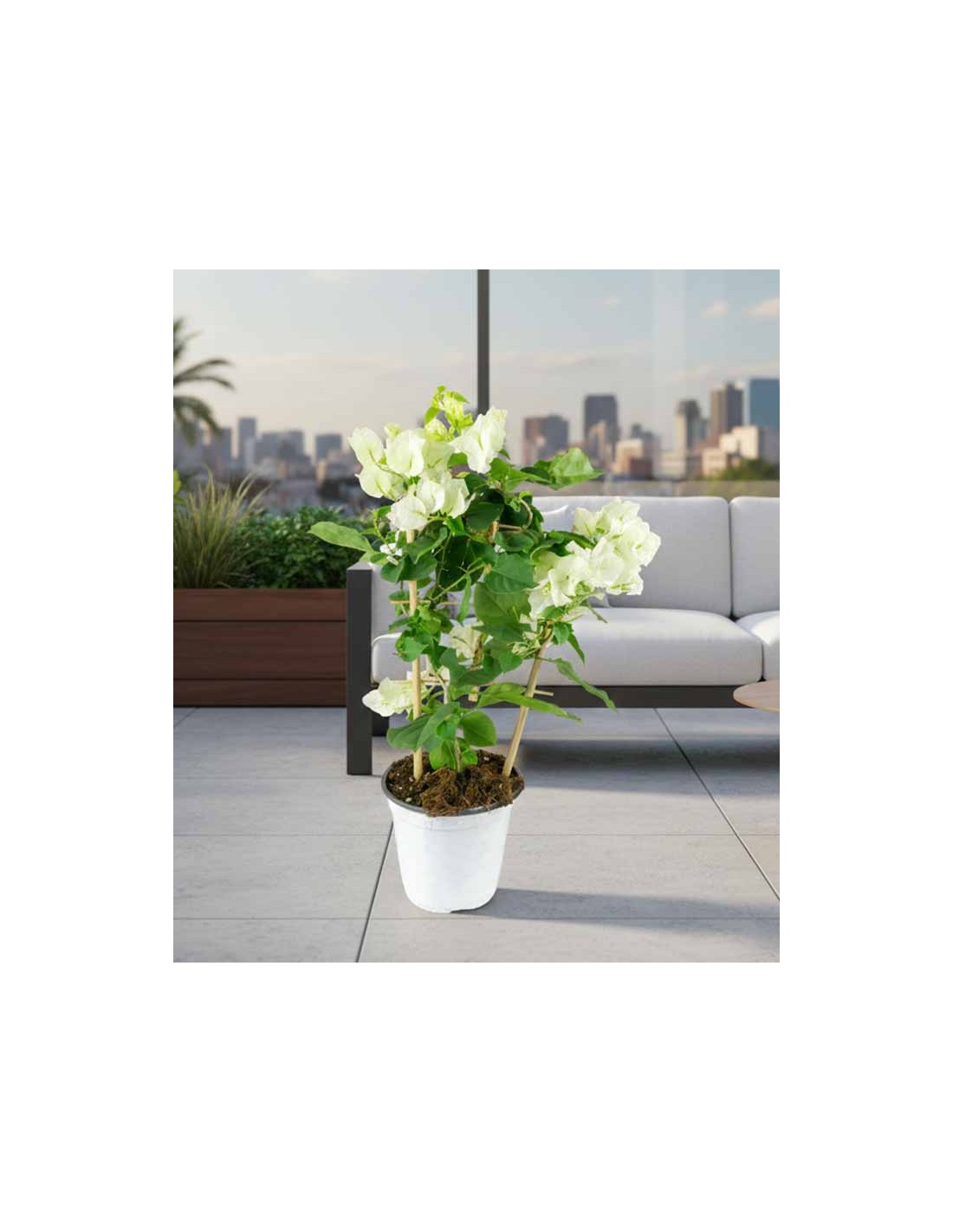 La bougainvillea in vaso a spalliera è la soluzione ideale per chi desidera una pianta rampicante ornamentale già impostata su supporto verticale. Con un'altezza di circa 40/50 cm e vaso Ø14 cm, è perfetta per balconi, terrazzi e piccoli giardini che necessitano di un tocco mediterraneo e scenografico.