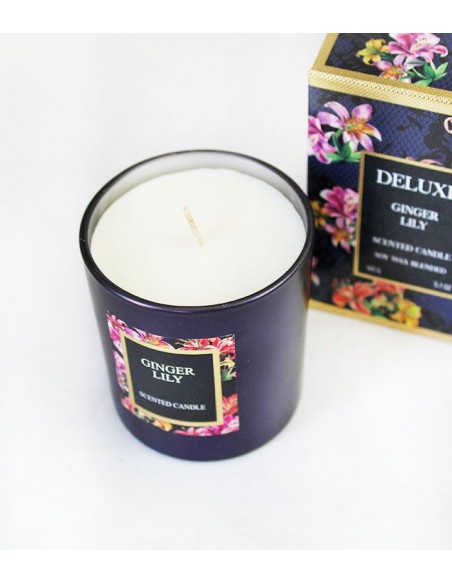 Candela profumata che accosta l'aroma aspro del ginger a quello delicato del giglio, il cui profumo è molto apprezzato per l'idea di purezza e delicatezza evocata dalla sua scia olfattiva.