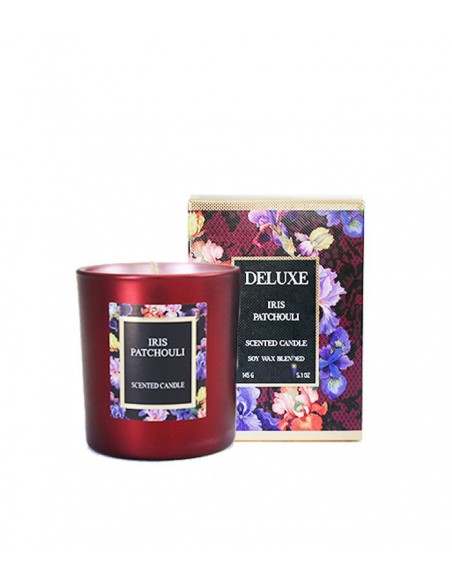 Candela profumata alle note di iris e patchouli, con un design essenziale ed allo stesso tempo elegante: box in cartoncino con una raffinata decorazione floreale; vetro di colore bordeaux opaco dallo stile moderno e lineare.