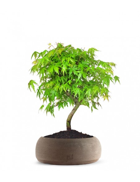 L'Acero verde è uno dei bonsai più belli da coltivare, per il fascino e l'eleganza difficilmente riscontrabili in altre specie. Le sue meravigliose foglie dalle mille sfumature di verde sono in grado di arricchire ogni ambiente in cui viene inserito, dando vita a spazi rilassanti e tranquilli; questo è anche uno dei motivi per cui in Giappone lo si utilizza molto spesso nei giardini zen. L'acero verde si presenta con una chioma piuttosto arrotondata e compatta, creata da rami sottili e glabri. Ma sono le foglie la componente più importanti della pianta dal punto di vista decorativo, queste ultime appaiono quasi rotonde, di un verde molto brillante, con lamina palmata. Imperdibili le loro sfumature autunnali, i cui toni variano dal giallo/bronzato all'ocra/arancio.
