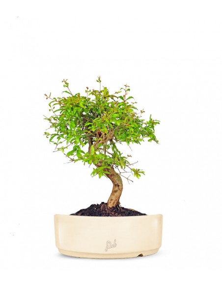 Il Melograno o Punica Granatum è una pianta originaria del Mediterraneo che presenta foglie opposte, oblunghe, lucide di colore verde smeraldo. Queste ultime si tingono di giallo in autunno prima di cadere, creando un vero spettacolo tutto da ammirare. Simbolo di abbondanza e prosperità, è uno dei bonsai che riesce a dare maggiori soddisfazioni, anche alle mani meno esperte. Di frequente riesce, non solo a fiorire, ma anche a fruttificare: i fiori semplici o semidoppi, di colore arancio intenso, danno poi vita ai frutti, le melagrane.
