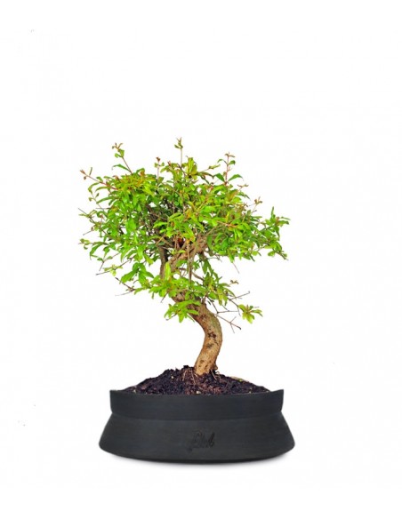 Il Melograno o Punica Granatum è una pianta originaria del Mediterraneo che presenta foglie opposte, oblunghe, lucide di colore verde smeraldo. Queste ultime si tingono di giallo in autunno prima di cadere, creando un vero spettacolo tutto da ammirare. Simbolo di abbondanza e prosperità, è uno dei bonsai che riesce a dare maggiori soddisfazioni, anche alle mani meno esperte. Di frequente riesce, non solo a fiorire, ma anche a fruttificare: i fiori semplici o semidoppi, di colore arancio intenso, danno poi vita ai frutti, le melagrane.