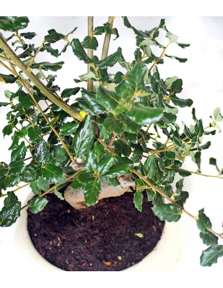 La quercia da sughero è un albero mediterraneo sempreverde la cui origine è da individuare nelle zone dell'Europa meridionale e dell'Africa settentrionale, ma il suo habitat attuale è quello delle aree del Mediterraneo. Si tratta di una pianta a crescita particolarmente lenta ma allo stesso tempo in natura raggiunge dimensioni davvero notevoli (anche 20 metri!). La quercia da sughero risulta quindi una pianta particolarmente longeva e resistente, tanto che ha preso in breve tempo un posto di rilievo nel mondo del bonsai, con esemplari di facile coltivazione e di forte impatto estetico. I rami sono affusolati e contorti, mentre le foglie, piccole e dentellate, sono verdi e coriacee. La fioritura avviene solitamente nel mese di maggio, producendo delle infiorescenze giallastre, alle quali seguono delle piccole ghiande. Il suo tronco è invece affusolato ed elegante, dal quale in natura si ricava il sughero.