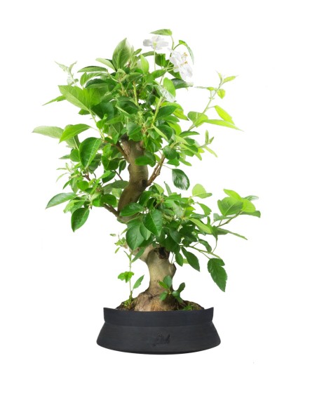 Il Melo è un'essenza rustica e di facile coltivazione, anche per i bonsaisti meno esperti. Si tratta di uno dei bonsai maggiormente coltivati ed apprezzati, soprattutto per le belle fioriture durante la stagione primaverile che rappresentano un caso unico nel panorama bonsaistico. I fiori sono di varie tonalità, che vanno dal bianco puro al rosa tenue. È particolarmente apprezzato anche perchè regala degli splendidi frutti in autunno, donando fascino alla pianta che nel periodo invernale risulta spoglia dalle foglie ma con i frutti. Le foglie sono di colore verde di forma ellittica e seghettate ai bordi sulla pagina inferiore, sulla pagina inferiore sono ricoperte di una sottile e folta peluria lievemente visibile,