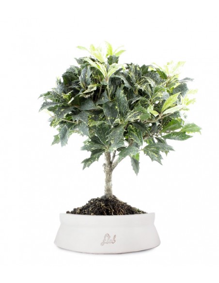L'Osmanthus è una specie che si presta altamente alla coltivazione come bonsai. Largamente apprezzato per la ricchezza del fogliame, lucido e dal verde intenso, stupisce grazie agli splendidi fiori. Paragonati alla bellezza della Luna in virtù del loro color bianco crema, crescono riuniti in grappoli ed emanano un gradevolissimo profumo. Tale caratteristica è suggerita dalla stessa etimologia del nome: letteralmente "fiore profumato". In Cina, la tradizione vuole che i fiori dell'Osmanthus vengano utilizzati per aromatizzare il thé e i biscotti. I frutti, molto decorativi, sono di un intenso blu scuro. L'Osmanthus predilige le zone molto soleggiate, perciò posiziona il vaso in modo che la pianta possa godere in maniera diretta dei raggi solari. Innaffia soltanto quando il terreno è asciutto e favorisci la crescita con la somministrazione di un concime a base di azoto e potassio.