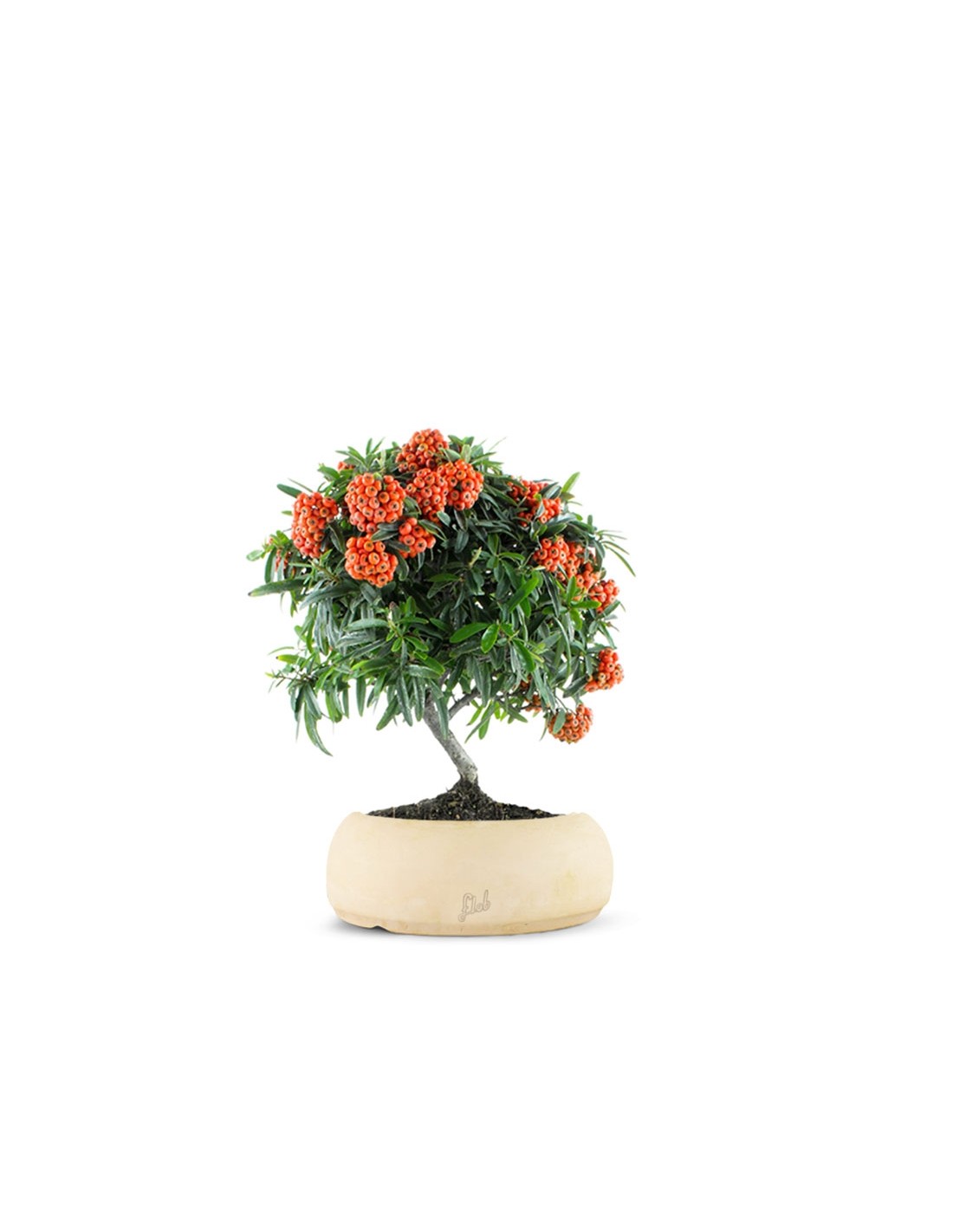 Il bonsai di Pyracantha è una pianta da esterno sempreverde molto resistente; infatti, è consigliata nei primi passi nel mondo del bonsai in quanto resiste bene anche in caso di errori durante la coltivazione. È una pianta che deve essere sottoposta ad alcune importanti cure per vegetare al meglio e mantenere il suo splendido aspetto: in primavera, va posizionata all'esterno, in una zona luminosa (come un balcone o terrazzo) in pieno sole, che potrà stimolarne la fioritura e di conseguenza la produzione di frutti; durante il periodo estivo, invece, la vostra pyracantha è bene posizionarla in un luogo in cui vi è metà giornata sole e metà ombra. Nel periodo invernale può stare tranquillamente all'esterno, l'unica accortezza è quella di riparare le radici nel caso in cui ci si trovi in località in cui è frequente andare a temperature sotto zero. La pyracantha, trattandosi di una pianta sempreverde dovrà essere annaffiata tutto l'anno, con azioni regolari, quando il terreno risulta asciutto. La potatura si può effettuare da Gennaio ad Aprile, mentre, il rinvaso si effettua con periodicità di circa 2 - 3 anni. La concimazione della pyracantha va eseguita come tutte le piante, dalla Primavera all'autunno ogni due/tre settimane e sospenderla in fase di fioritura.
