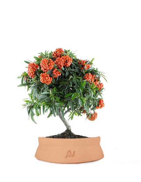 Il bonsai di Pyracantha è una pianta da esterno sempreverde molto resistente; infatti, è consigliata nei primi passi nel mondo del bonsai in quanto resiste bene anche in caso di errori durante la coltivazione. È una pianta che deve essere sottoposta ad alcune importanti cure per vegetare al meglio e mantenere il suo splendido aspetto: in primavera, va posizionata all'esterno, in una zona luminosa (come un balcone o terrazzo) in pieno sole, che potrà stimolarne la fioritura e di conseguenza la produzione di frutti; durante il periodo estivo, invece, la vostra pyracantha è bene posizionarla in un luogo in cui vi è metà giornata sole e metà ombra. Nel periodo invernale può stare tranquillamente all'esterno, l'unica accortezza è quella di riparare le radici nel caso in cui ci si trovi in località in cui è frequente andare a temperature sotto zero. La pyracantha, trattandosi di una pianta sempreverde dovrà essere annaffiata tutto l'anno, con azioni regolari, quando il terreno risulta asciutto. La potatura si può effettuare da Gennaio ad Aprile, mentre, il rinvaso si effettua con periodicità di circa 2 - 3 anni. La concimazione della pyracantha va eseguita come tutte le piante, dalla Primavera all'autunno ogni due/tre settimane e sospenderla in fase di fioritura.