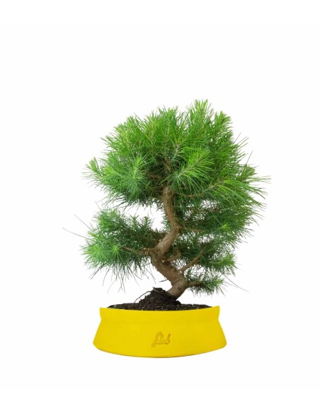 Questo bonsai di Pino d'aleppo di 9 anni ha un vaso artigianale prodotto in Italia e disegnato da FLOB, che conferisce all'albero un tocco di eleganza e raffinatezza. Il vaso è realizzato con materiali di alta qualità e ha una finitura resistente e durevole.