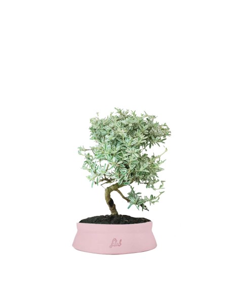 Il Coprosma Bonsai ha un aspetto molto gradevole, e questo esemplare unico presenta bellissime foglie lanceolate, piccole e variegate, che cambiano sfumatura in base alla stagione, tra il verde chiaro e il giallo-avorio.