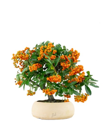 Il bonsai di Pyracantha è un esemplare in miniatura appartenente alla famiglia delle Rosaceae.