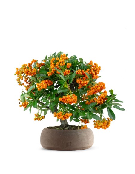 Il bonsai di Pyracantha è noto anche come bonsai di fuoco, il suo nome deriva infatti da una parola greca che significa “spina di fuoco”, proprio per i suoi colori e per la presenza di spine sui rami.