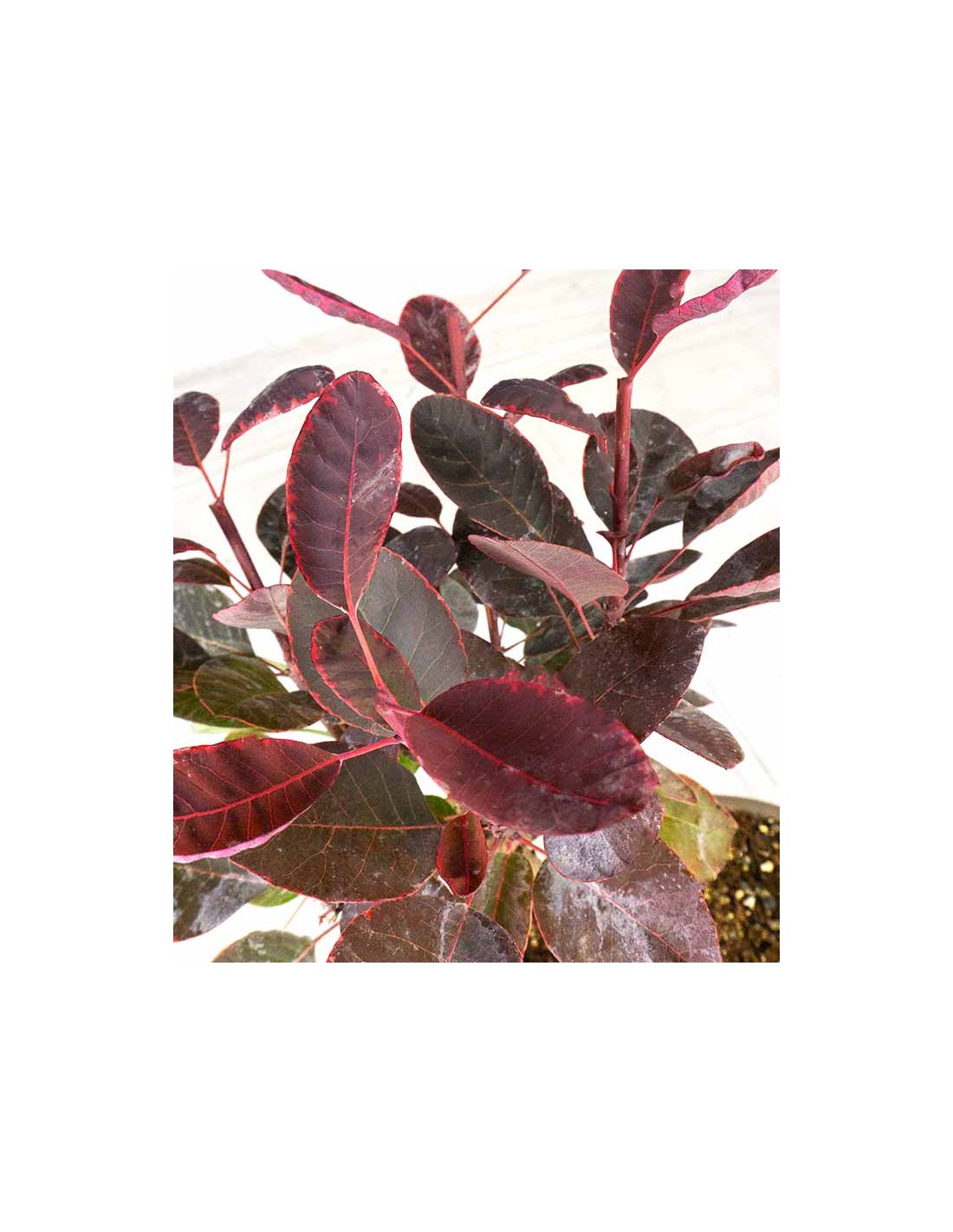 Esistono diverse varietà di cotinus coggygria, come il Cotinus obovatus e il rinomato Cotinus Golden Spirit, noti per i loro colori unici. Questo bonsai di cotinus coggygria porta con sé lo stesso fascino ornamentale, in un formato compatto che lo rende perfetto anche per terrazzi e balconi.