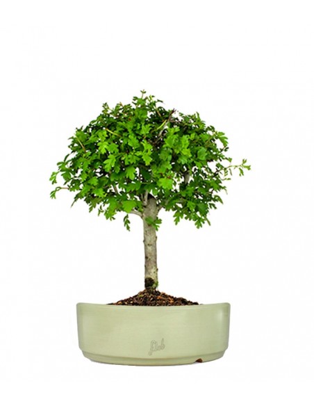 Il biancospino, o Crateagus, era per i greci l'emblema della potenza riproduttiva femminile. Il suo nome comune, invece, è il riflesso delle caratteristiche estetiche: fiori bianchi e spine lungo i rami identificano questa pianta. Di origine asiatica, il Crateagus è presente in natura con oltre 200 varietà, ma quelle più adatte per i bonsai sono il Monogyna, l'Oxycantha e la Cuneata. Tutte le varietà sono accomunate da una corteccia bruna e da bacche rosse che seguono la fioritura di maggio. Non avrai difficoltà a coltivare il biancospino in casa: non teme il caldo o il freddo, quindi posizionalo in pieno sole per agevolare la fioritura. Procedi con innaffiature costanti, quando il terriccio appare secco. Utilizza azoto, fosfati e potassio ogni 15 giorni, per aiutare la pianta ad irrobustirsi. Un Crateagus bonsai è perfetto anche per i neofiti: la pianta giusta per fornire un tocco di design a qualsiasi ambiente.