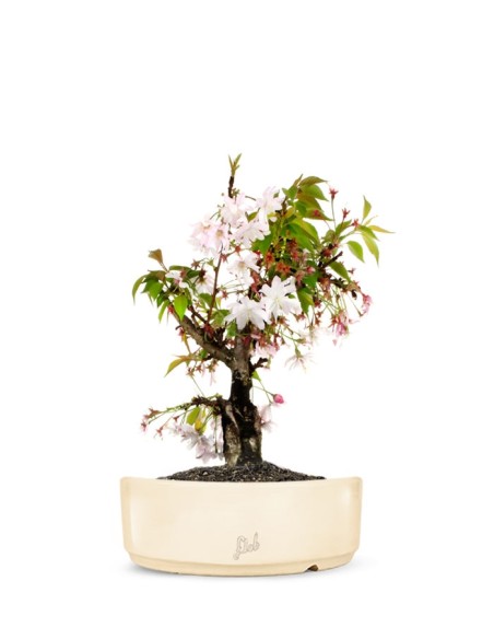 Il Ciliegio Giapponese, chiamato anche "ciliegio da fiore", è una pianta ornamentale famosa per le sue spettacolari fioriture primaverili. La varietà Kanzan crea effetti scenografici anche in autunno, quando le foglie assumono un bel colore giallo-rame. Si tratta di alberi robusti, di media o piccola dimensione in natura, con fiori che vanno dal rosa al bianco e una chioma globosa, fastigiata o pendula. Il frutto è abbastanza piccolo e questo la rende particolarmente indicata per l'Arte Bonsai. Posizionala in un luogo luminoso e annaffiala "a pioggia" solo quando il terreno è asciutto: il bonsai Ciliegio non tollera l'eccesso di acqua.