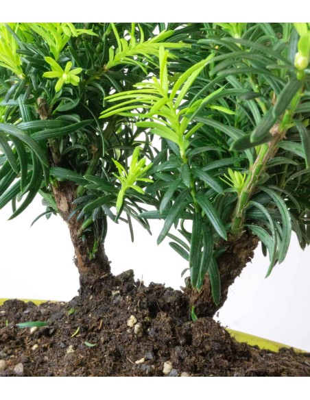 Il peculiare colore bruno-rossiccio della corteccia, la fitta vegetazione, il verde brillante delle foglie e i graziosi frutti rossi fanno del tasso una pianta altamente ornamentale. Denominato l'albero della morte, a cause dell'elevata tossicità delle foglie e dei semi, è sin dai tempi più remoti legato ai riti funerari. Tuttavia, il simbolismo mistico non fa altro che accrescere il fascino di questa conifera, la cui coltivazione come bonsai regala grandi soddisfazioni. Posiziona il tasso in posizione riparata e innaffia abbondantemente, così da mantenere il terreno sempre umido. Nelle giornate più calde, nebulizza dell'acqua demineralizzata sulla chioma e adopera un concime a lenta cessione in primavera.