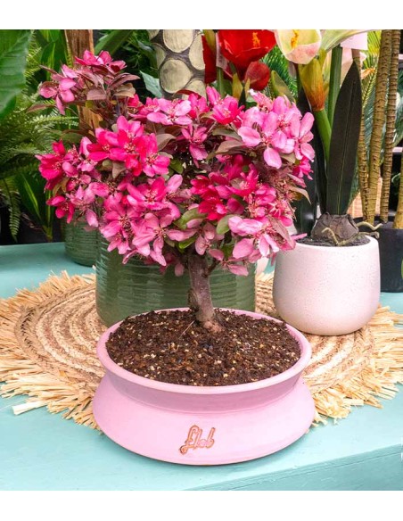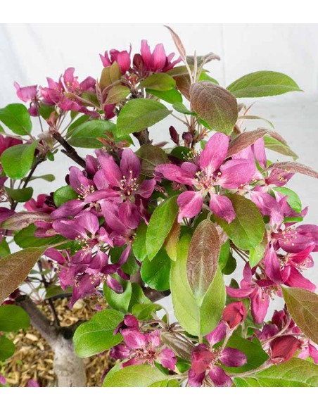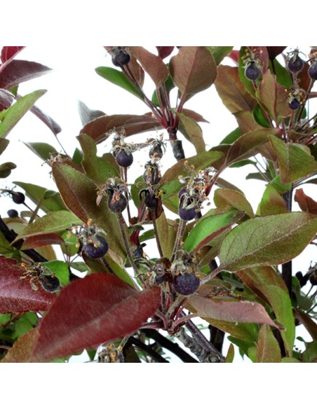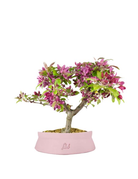 Il Malus è una delle piante maggiormente impiegate per la coltivazione a bonsai per la sua abbondante fioritura, perché produce piccole mele commestibili, per la sua crescita veloce e perché è una pianta rustica che difficilmente viene attaccata da malattie e parassiti. Della stessa famiglia delle nostre mele da pasto, fiorisce precocemente a primavera: le gemme color rosa antico si schiudono con l'arrivo della primavera generando dei fiori bianchi molto graziosi e profumati, del diametro di circa 3/5 cm. I frutti che si originano dai fiori impollinati sfoggiano tutte le tonalità dei colori dell'autunno e rimangono per molto tempo attaccate ai rami. Nonostante sia una pianta rustica e longeva, attieniti a queste indicazioni se vuoi che il tuo Malus bonsai cresca sano e rigoglioso: scegli una posizione molto luminosa ma proteggilo con una rete dai raggi del sole troppo intensi d'estate; innaffialo con regolarità dalla primavera all'autunno, anche 2 volte al giorno; scegli un substrato di coltivazione che garantisca un buon drenaggio e fornisci durante tutto il periodo vegetativo un buon fertilizzante a cessione lenta ricco di fosforo. Vedrai che sarà semplicissimo coltivare il tuo albero di mele in miniatura e in breve tempo potrai godere della sua spettacolare fioritura.