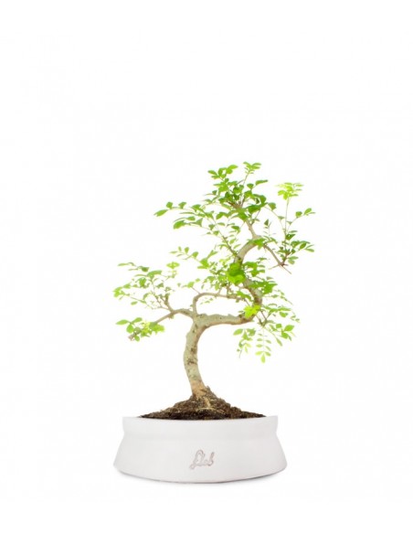 Il Frassino è un vigoroso e diffuso albero a foglie decidue, nativo di gran parte d'Europa dove arriva anche oltre i 30 metri di altezza. Facilmente riconoscibile in inverno dalle foglie nere. Questo bonsai durante i mesi invernali va collocato all'interno. Dalla primavera all'inizio dell'autunno, può essere posizionato all'esterno, riparato però dai raggi diretti del sole, soprattutto nei mesi di luglio e agosto, nei quali è indicato tenerlo all'ombra per proteggere le radici dal caldo torrido. Il tronco diventa grosso e robusto in pochi anni, mentre le piccole foglie composite gli conferiscono una leggerezza senza eguali. Produce dei graziosi fiori bianchi, leggermente sfumati di rosa, a forma di pannocchia.