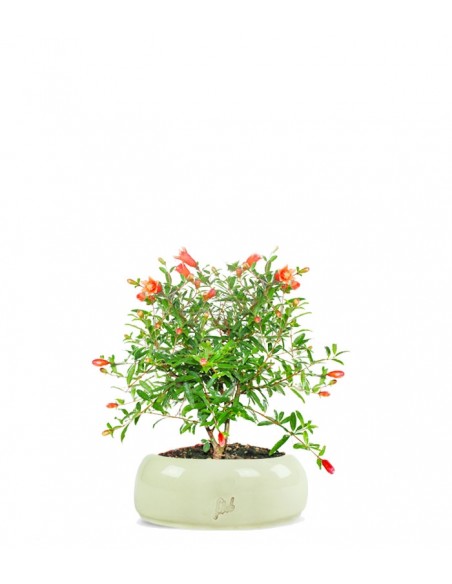 Il Melograno Bonsai è una specie che ben si presta alla coltivazione come bonsai, poiché sopporta di buon grado le potature drastiche e le pinzature. Altamente ornamentale, affascina grazie alla fitta ramificazione, alla splendida fioritura e al rosso brillante dei frutti. Il nome di derivazione latina, letteralmente "pomo con semi", sottolinea le affinità del frutto alla mela, con cui, però, a ben vedere, condivide soltanto la forma. I succosi chicchi del melograno si prestano ad ampi impieghi nella cucina non solo mediterranea, ma anche medio-orientale e asiatica.