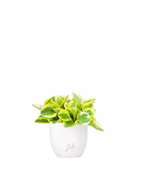 La Peperomia obtusifolia variegata, detta anche “green gold”, è una pianta originaria delle zone tropicali dell'America Meridionale. Questa specie, tra le più rustiche del genere, presenta fusti succulenti tipici di una pianta grassa. Si contraddistingue per la presenza di grandi foglie carnose lucide e dalla forma obovata. Il colore verde scuro è alternato da una variegatura color giallo, crema che tende a sparire nelle foglie più vecchie o in condizioni di scarsa luminosità. In estate produce numerosi fiori bianchi riuniti in spighette, al centro della pianta. La natura compatta e il fogliame ornamentale rendono la peperomia green gold particolarmente adatta per impreziosire uffici o ambienti interni. Inoltre è una pianta che richiede poche cure e ciò la rende una compagna verde ideale.