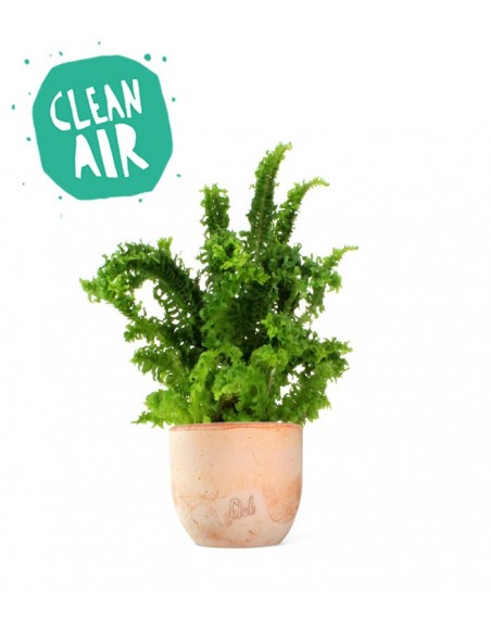 La Nephrolepis, spesso conosciuta con il nome di Felce di Boston, è una pianta che necessita di poche attenzioni. E' particolarmente interessante dal punto di vista decorativo e possiede anche forti proprietà di depurazione dell'aria; per questo potrai posizionarla in un ufficio o in un soggiorno. Le foglie di questa varietà “Emina Dragon Tail” si orientano verso l'alto e sono più rigide rispetto ad altre felci; inoltre possiedono un notevole aspetto arricciato/crestato ed è proprio quest'ultimo che gli conferisce il soprannome “Coda di drago”. Le foglie più giovani di questa pianta crescono dal centro verso l'esterno. Ama i posti luminosi ma non la luce del sole diretta.