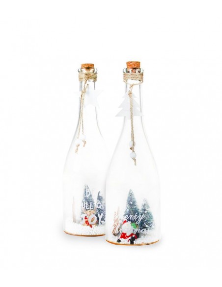 Una bottiglia in vetro dalle forme essenziali che contiene al suo interno un paesaggio natalizio innevato con una renna che fa da protagonista, il tutto illuminato da micro led. Si tratta di un elegante elemento decorativo, che grazie al suo design in vetro si adatta ad ogni ambiente, creando angoli di tendenza e diffondendo una piacevole atmosfera. Potrete utilizzarla come luce notturna oppure semplicemente appoggiarla su un tavolino insieme ad altre luci, candele o decorazioni per ricreare magici angoli natalizi.