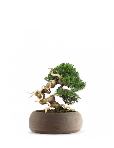 Bonsai per eccellenza tra le conifere giapponesi, il ginepro giapponese possiede per natura un andamento libero. Segnato da un tronco di colore rossastro si lascia scortecciare agilmente, prestandosi ad assumere andamenti originali grazie alla sua grande flessibilità. La fioritura del bonsai giapponese si compie quando le piccole bacche assumono un colore violaceo intenso. Desiderato da tutti gli appassionati per la sua malleabilità non necessita di cure particolari: predilige le posizioni areate, ma teme la calura estiva già quando la temperatura oltrepassa i 25°. D'inverno resiste bene al freddo, ma dovrai proteggere le sue radici quando la temperatura scende sotto i -5°. Per evitare che l'apparato radicale marcisca mantieni il terreno umido ma non bagnato, abbondando con le innaffiature d'estate ed attendendo che la terra sia asciutta prima di irrorarla ancora. Queste attenzioni basteranno per fornire il vigore necessario al bonsai che ti ripagherà disegnando in casa uno spazio in pieno stile zen.