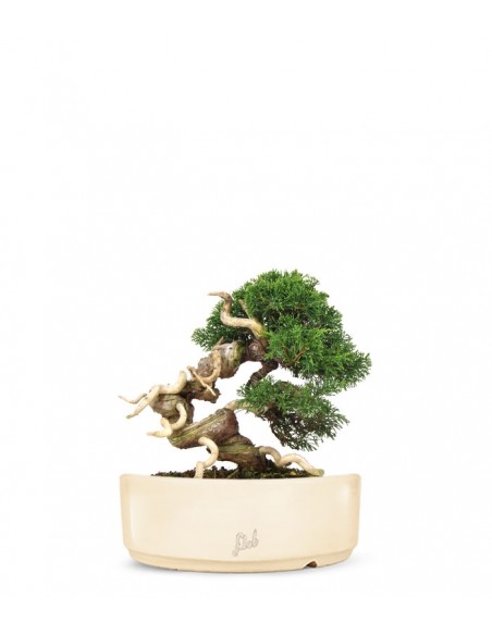 Bonsai per eccellenza tra le conifere giapponesi, il ginepro giapponese possiede per natura un andamento libero. Segnato da un tronco di colore rossastro si lascia scortecciare agilmente, prestandosi ad assumere andamenti originali grazie alla sua grande flessibilità. La fioritura del bonsai giapponese si compie quando le piccole bacche assumono un colore violaceo intenso. Desiderato da tutti gli appassionati per la sua malleabilità non necessita di cure particolari: predilige le posizioni areate, ma teme la calura estiva già quando la temperatura oltrepassa i 25°. D'inverno resiste bene al freddo, ma dovrai proteggere le sue radici quando la temperatura scende sotto i -5°. Per evitare che l'apparato radicale marcisca mantieni il terreno umido ma non bagnato, abbondando con le innaffiature d'estate ed attendendo che la terra sia asciutta prima di irrorarla ancora. Queste attenzioni basteranno per fornire il vigore necessario al bonsai che ti ripagherà disegnando in casa uno spazio in pieno stile zen.