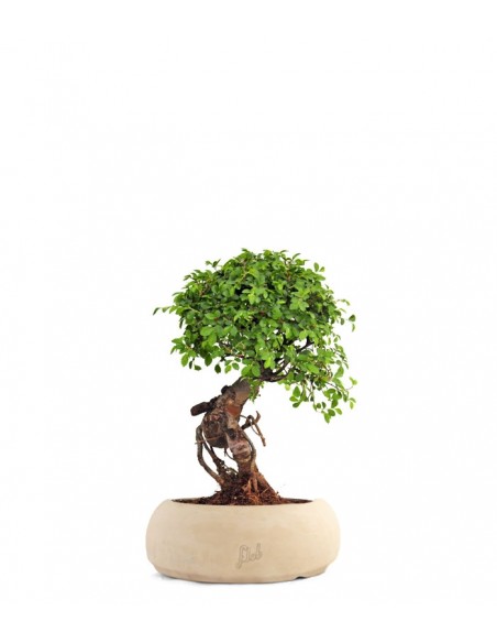 Questo esemplare, presenta una forma elegante e armoniosa, caratterizzata da radici fuori terra nodose e rugose e una chioma proporzionata e brillante. Le piccole foglie con i margini finemente seghettati sono di un bel verde scuro in primavera ed estate, mentre in autunno assumono tonalità molto belle di giallo aranciato, per poi cadere. Da notare però che se viene coltivato all'interno diviene un sempreverde.