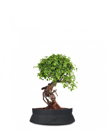 Questo esemplare, presenta una forma elegante e armoniosa, caratterizzata da radici fuori terra nodose e rugose e una chioma proporzionata e brillante. Le piccole foglie con i margini finemente seghettati sono di un bel verde scuro in primavera ed estate, mentre in autunno assumono tonalità molto belle di giallo aranciato, per poi cadere. Da notare però che se viene coltivato all'interno diviene un sempreverde.