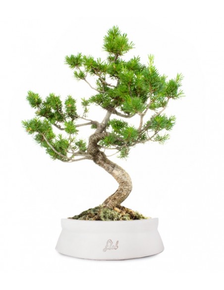 È una nota variante del Pino Parviflora ed è conosciuto anche come Pino a 5 aghi, Pino bianco e "goya-matsu" in Giappone. In natura raggiunge i 25-30 m di altezza e rappresenta la conifera più utilizzata come bonsai. Ha un tronco eretto e tortuoso, una chioma di forma piramidale folta e ben ramificata e aghi di colore verde-azzurro che si uniscono a gruppi di 5, da cui il nome. Esiste anche una sottospecie con aghi verdi più corti e sottili chiamata "Kokonoe". Ama luoghi soleggiati e ben ventilati e non teme né il caldo né il freddo, sebbene, in caso di gelo, sia meglio coprire il vaso con tnt. Richiede annaffiature periodiche, soprattutto se tenuto all'interno, ma è importante evitare i ristagni d'acqua. La potatura va effettuata in inverno, il rinvaso ogni 3-5 anni. È una specie molto longeva, tanto da essere tramandata di generazione in generazione nei paesi d'origine, e diventa sempre più bella col passare del tempo. All'interno del National Arboretum di Washigton DC è custodito un esemplare di oltre 390 anni: il pino bianco fu donato agli Stati Uniti nel 1975 da Masaru Yamaki, un maestro bonsai, per le celebrazioni del bicentenario della fondazione degli USA.