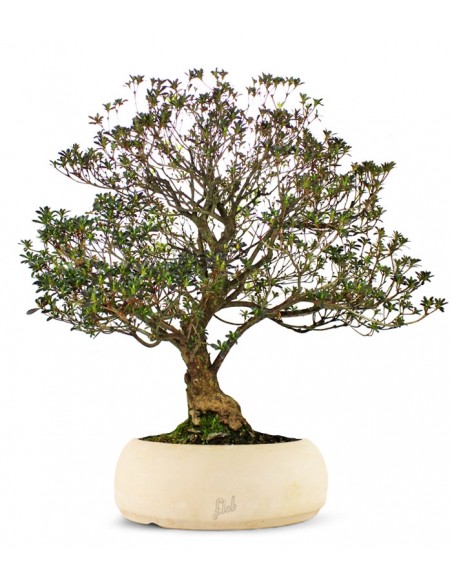 L'Azalea Japonica, conosciuta anche come Albero delle rose o Rhododendron, è una delle varianti più apprezzate dagli artisti bonsaisti per via delle sue foglie piccole e scure, del tronco rugoso con nebari che partono a raggiera e dei fiori bianchi, rosa o violacei, che tendono a ricoprire tutti i rami, offrendo splendide fioriture primaverili. Ama gli ambienti leggermente umidi e luminosi, ma non la luce diretta del sole: l'ideale sarebbe posizionarla accanto a una pianta più grande che possa farle ombra. Necessita di annaffiature frequenti con acqua piovana o demineralizzata e la potatura va fatta quando i 2/3 dei fiori sono appassiti. Come le altre piante appartenenti alla famiglia delle Ericaceae, richiede un terreno acido (pH 4,5-5,5): si possono usare la torba bionda, la sabbia oppure il kanuma, una particolare argilla giapponese.