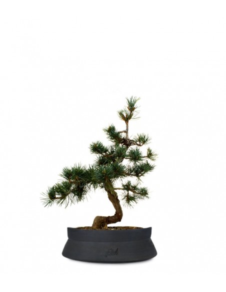 È una nota variante del Pino Parviflora ed è conosciuto anche come Pino a 5 aghi, Pino bianco e "goya-matsu" in Giappone. In natura raggiunge i 25-30 m di altezza e rappresenta la conifera più utilizzata come bonsai. Ha un tronco eretto e tortuoso, una chioma di forma piramidale folta e ben ramificata e aghi di colore verde-azzurro che si uniscono a gruppi di 5, da cui il nome. Esiste anche una sottospecie con aghi verdi più corti e sottili chiamata "Kokonoe". Ama luoghi soleggiati e ben ventilati e non teme né il caldo né il freddo, sebbene, in caso di gelo, sia meglio coprire il vaso con tnt. Richiede annaffiature periodiche, soprattutto se tenuto all'interno, ma è importante evitare i ristagni d'acqua. La potatura va effettuata in inverno, il rinvaso ogni 3-5 anni. È una specie molto longeva, tanto da essere tramandata di generazione in generazione nei paesi d'origine, e diventa sempre più bella col passare del tempo. All'interno del National Arboretum di Washigton DC è custodito un esemplare di oltre 390 anni: il pino bianco fu donato agli Stati Uniti nel 1975 da Masaru Yamaki, un maestro bonsai, per le celebrazioni del bicentenario della fondazione degli USA.