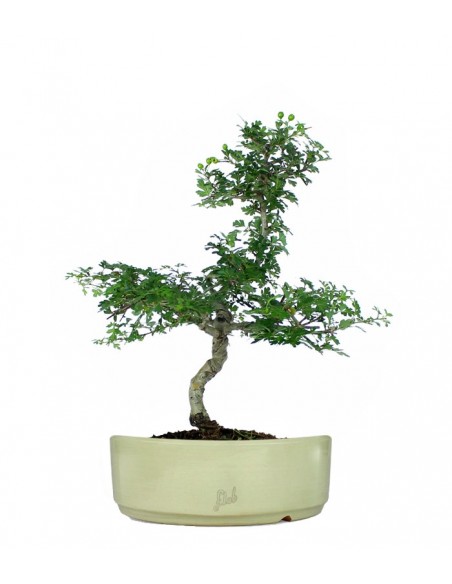 Il biancospino, o Crataegus, è una pianta caducifoglia e latifoglia. Di origine asiatica, il Crateagus è presente in natura con oltre 200 varietà, ma quelle più adatte per i bonsai sono il Monogyna, l'Oxycantha e la Cuneata. Il fusto è coperto da una corteccia compatta di colore grigio. I rami più giovani riportano delle spine che si sviluppano alla base ed sono proprio questi rametti che si riempiono di fiori in primavera. Il biancospino ha molte proprietà benefiche utili a risolvere problemi cardiovascolari e riguardanti il sistema nervoso centrale. ? usato come ansiolitico ed è indicato per casi di insonnia. L'ampia diffusione in arte bonsai è determinata dal suo essere molto decorativo anche quando non è fiorito e dalla sua grande vigoria e dalla sua crescita molto rapida.