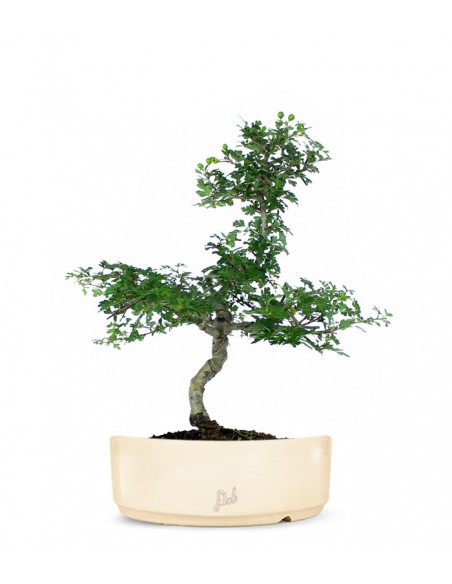 Il biancospino, o Crataegus, è una pianta caducifoglia e latifoglia. Di origine asiatica, il Crateagus è presente in natura con oltre 200 varietà, ma quelle più adatte per i bonsai sono il Monogyna, l'Oxycantha e la Cuneata. Il fusto è coperto da una corteccia compatta di colore grigio. I rami più giovani riportano delle spine che si sviluppano alla base ed sono proprio questi rametti che si riempiono di fiori in primavera. Il biancospino ha molte proprietà benefiche utili a risolvere problemi cardiovascolari e riguardanti il sistema nervoso centrale. ? usato come ansiolitico ed è indicato per casi di insonnia. L'ampia diffusione in arte bonsai è determinata dal suo essere molto decorativo anche quando non è fiorito e dalla sua grande vigoria e dalla sua crescita molto rapida.