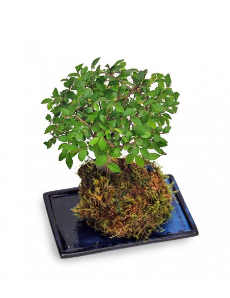 In questo caso lo ritroviamo coltivato con la tecnica del kokedama: che tradotto in italiano significa “ perla di muschio”. Ossia le radici della pianta non vengono inserite nel terriccio, bensì compattate in una miscela di fango e muschio. Una soluzione green assolutamente innovativa che non prevede dunque l'utilizzo del vaso, ma il bonsai di zelkova è appoggiato su di un sottovaso in ceramica. L'alternativa può essere quella di appenderlo per creare, insieme ad altri bonsai della stessa linea, composizioni fluttuanti che si adattano a qualsiasi ambiente, donando un'aria delicata ed eterea. Un complemento d'arredo originale per decorare la vostra casa senza rubare troppo spazio oppure un'ottima idea regalo.
