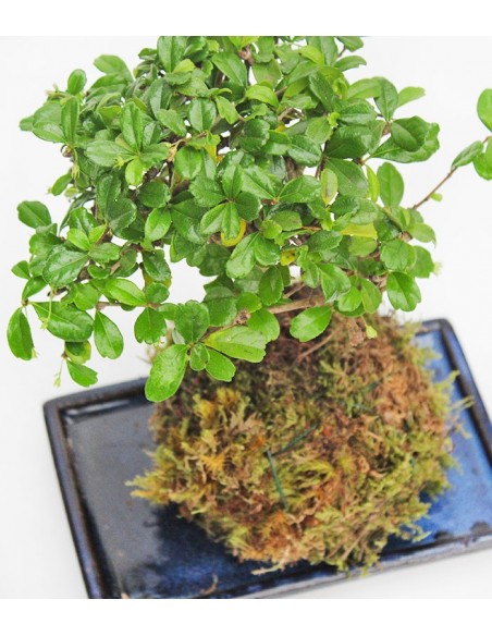 Se siete sempre alla ricerca di idee per decorare la vostra casa e renderla chic, non potete certo lasciarvi scappare uno degli ultimi trend in materia green: il kokedama. In italiano può essere tradotto come “perla di muschio” poiché si tratta di un raffinato metodo di coltivazione che prevede che il bonsai non sia messo con le radici a terra, bensì queste ultime sono mescolate in una sfera di terriccio e fango e poi ricoperta di muschio. Un'alternativa davvero insolita ma altrettanto affascinante che apre nuovi confini per la creazione di spazi verdi dentro casa. In questo caso si tratta di un bonsai di Carmona, una pianta sempreverde che prende il nome dalla provincia sud-orientale cinese di Fukien dove si trovava originariamente. Ha piccole foglie lucide verde scuro leggermente pelose e di forma compatta. La corteccia di colore marrone chiaro assume invece un aspetto rugoso con l'età. All'inizio dell'estate la carmona produce fiori bianchi seguiti da piccole bacche nere. Il kokedama può essere posto su di una mensola o un coffee table con il suo sottovaso in ceramica oppure appeso, insieme ad altri esemplari della stessa collezione, per creare composizioni volanti dall'effetto davvero wow.