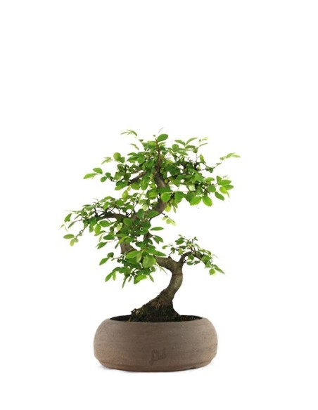 Si tratta del bonsai ideale per dare alla propria abitazione un tocco suggestivo, senza impegnarsi in una coltivazione impegnativa. Chiamata anche olmo giapponese, la Zelkova ha foglie verdi e dentellate che nella stagione autunnale, prima della caduta, assumono un colore giallo arancio, regalando alla tua casa l'atmosfera tipica di questo periodo dell'anno. La coltivazione di tale bonsai è molto semplice e anche i principianti non si troveranno in difficoltà: se hai la fortuna di avere uno spazio all'aperto, questa Ulmacea si adatta bene in posizioni soleggiate, a patto di ombreggiarla quando il calore è eccessivo. Nel corso dell'inverno, specialmente se le temperature sono molto rigide, è sufficiente proteggere le fronde e il vaso con un foglio di tessuto-non-tessuto. Altrimenti lasciala vivere all'interno, ma evita di alternare le due collocazioni. Un paio di volte al mese fertilizza il tuo albero in miniatura e potalo in autunno, eliminando i rami che crescono in modo disordinato. Per quanto riguarda le annaffiature: non esagerare e, prima di ripetere l'operazione, lascia asciugare bene il terreno. Il rinvaso deve essere fatto ogni due anni, utilizzando terriccio specifico. Una pianta scenografica accompagnata da un contenitore altrettanto d'effetto.