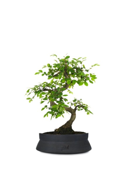 Si tratta del bonsai ideale per dare alla propria abitazione un tocco suggestivo, senza impegnarsi in una coltivazione impegnativa. Chiamata anche olmo giapponese, la Zelkova ha foglie verdi e dentellate che nella stagione autunnale, prima della caduta, assumono un colore giallo arancio, regalando alla tua casa l'atmosfera tipica di questo periodo dell'anno. La coltivazione di tale bonsai è molto semplice e anche i principianti non si troveranno in difficoltà: se hai la fortuna di avere uno spazio all'aperto, questa Ulmacea si adatta bene in posizioni soleggiate, a patto di ombreggiarla quando il calore è eccessivo. Nel corso dell'inverno, specialmente se le temperature sono molto rigide, è sufficiente proteggere le fronde e il vaso con un foglio di tessuto-non-tessuto. Altrimenti lasciala vivere all'interno, ma evita di alternare le due collocazioni. Un paio di volte al mese fertilizza il tuo albero in miniatura e potalo in autunno, eliminando i rami che crescono in modo disordinato. Per quanto riguarda le annaffiature: non esagerare e, prima di ripetere l'operazione, lascia asciugare bene il terreno. Il rinvaso deve essere fatto ogni due anni, utilizzando terriccio specifico. Una pianta scenografica accompagnata da un contenitore altrettanto d'effetto.