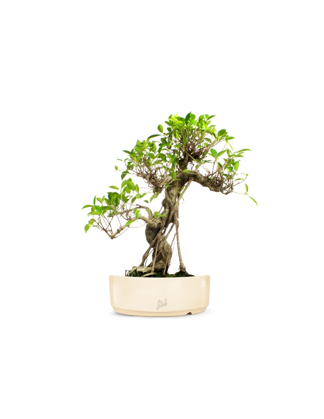 Il tronco è di colore biancastro, mentre il fogliame ha una bella tonalita? di verde intenso ed ogni foglia ha forma ovale ed appuntita. L'aspetto maggiormente caratterizzante di questa pianta sono le spettacolari radici, che creano un affascinante groviglio fuori terra, e proprio per questo è uno dei bonsai che più si adatta allo stile giapponese “Neagari”, ovvero a radici esposte. Inoltre, dai rami spesso partono altre radici aeree, che una volta raggiunta terra formano degli ulteriori tronchi. Il Ficus retusa è particolarmente indicato a chi vuole avvicinarsi al mondo dei bonsai, le sue caratteristiche da pianta da appartamento e la sua longevità lo rendono ideale per coltivare questa passione.