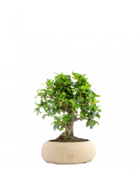 E' una piccola pianta sempreverde, originaria della Cina e molto diffusa in Asia meridionale. La Carmona è particolarmente apprezzata nell'uso bonsaistico proprio per le sue forme proporzionate. Può raggiungere in natura anche i dieci metri di altezza. Fiorisce in primavera con piccoli fiori bianchi; alla fine dell'estate produce piccoli frutti tondeggianti, dapprima verdi e poi rosso-violacei. Teme il freddo ed è adatto più che altro a climi caldi e umidi. Va posizionato in un luogo molto luminoso ma al riparo da sole diretto e fonti di calore. Durante la stagione calda è consigliabile spostarlo in un luogo riparato e in ombra. Va innaffiato con abbondanza e regolarità evitando ristagni.Condizioni di Spedizione